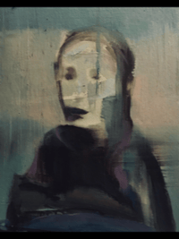 This is a small study in oil on panel. The image is from a photograph album I bought at a Berlin flea market in the early nineties-the album dated from late 19th century up until the thirties which this image is from. It was the last image in the album and considering the context of the photograph, where and when it was -the family histories, it paints itself ...